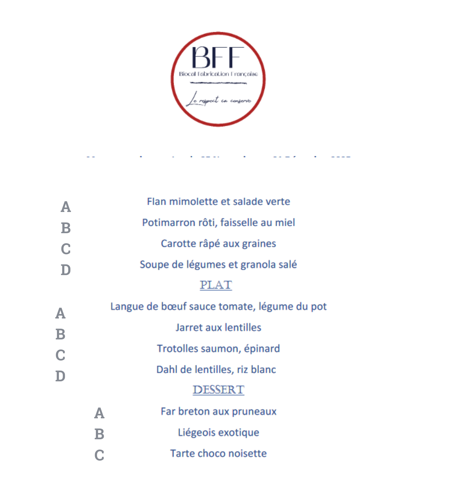 Menu du 27 au 29 novembre