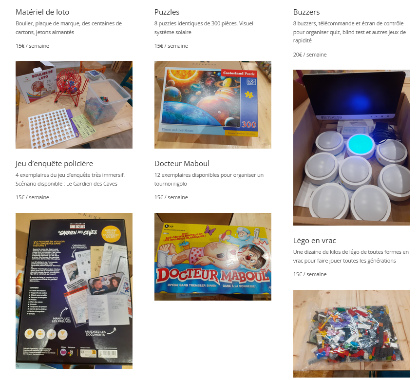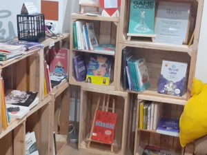 Nous mettons à disposition une centaine de jeux d’ambiance simples et familiaux ainsi que de nombreux petits casse-tête. Mais aussi une bibliothèque avec BDs, essais, histoires courtes,…un puzzle participatif, des mots croisés, un tricot participatif, bref vous pouvez laisser votre téléphone dans votre sac, ici vous ne vous ennuierez pas !